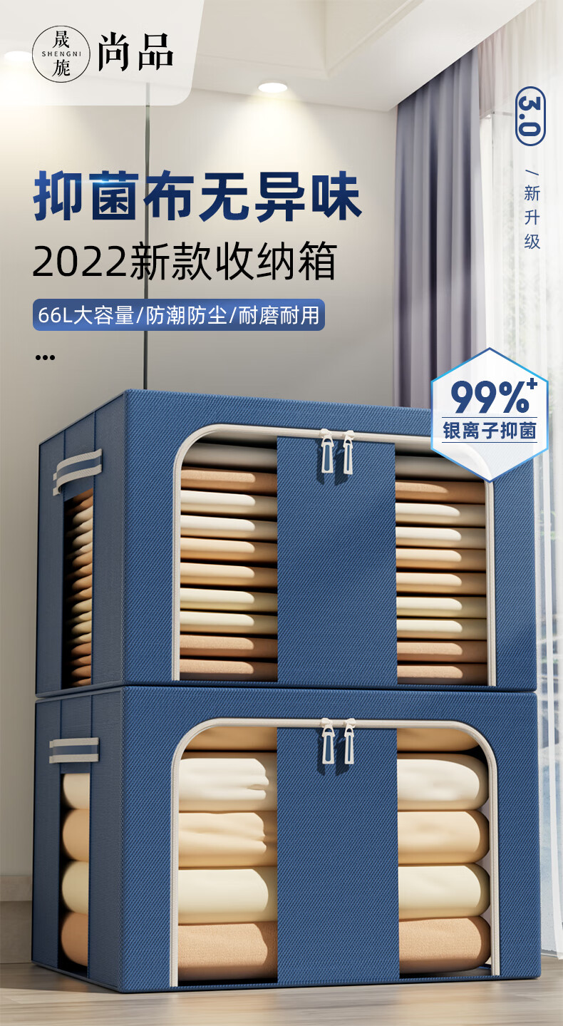 商品名称:晟旎尚品 收纳箱抗菌66L大号3只装衣服棉被布艺整理箱牛津布折叠储物箱