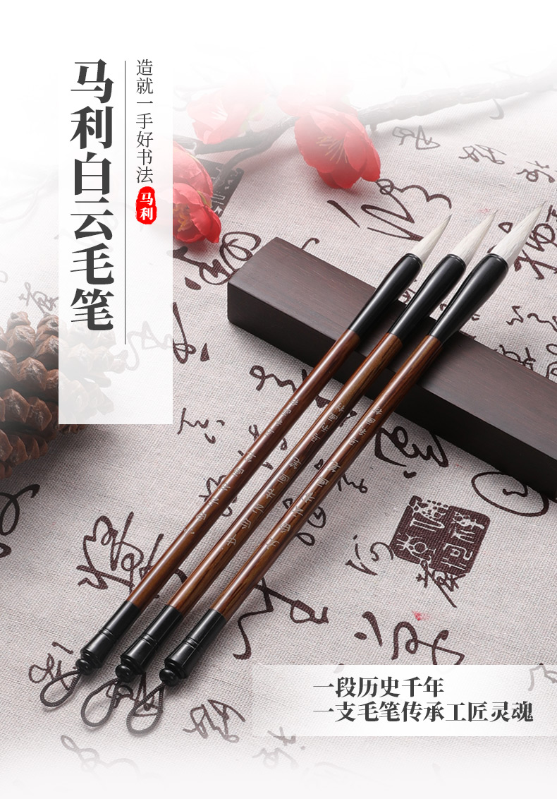 商品名称:马利(Marie's)白云毛笔大中小3支装 白云羊毫毛笔大中小楷 书法山水工笔国画笔初学者学生练字毛笔G1333
