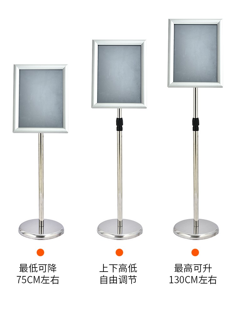 商品名称:易利丰(elifo)不锈钢可伸缩立牌展示牌水牌展示架立式广告牌指示牌引导牌支架子菜单展板 直角 a3银色 1套装