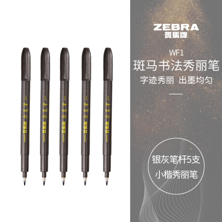斑马牌(ZEBRA)小楷 学生毛笔练字笔 书法笔请柬笔 WF1 银灰笔杆 5支装